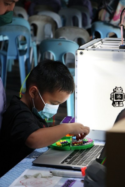 Seorang kanak-kanak menyertai aktiviti yang disediakan oleh Pustaka Negeri